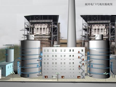 中國恩菲設計的第一個電廠煙氣脫硫工程。采用“石灰-石膏”濕法煙氣脫硫工藝,設計處理氣量為2×83萬Nm3/h, 煙氣中SO2含量約為2800mg/Nm3,一爐一塔配置,吸收塔為中國自主知識產權的“高效旋流板塔”。2004年9月開始建設,2005年12月順利投產,脫硫率高于95%,是中國恩菲第一套完全采用國產化煙氣脫硫技術的工程。