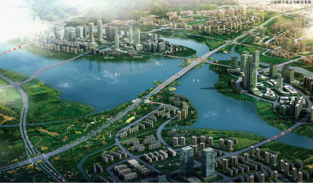 由知識大道以北約300米至鐘太快速以南約400米(九佛污水處理廠)為第三標段,全長5.6千米,城市Ι級主干路,標準斷面度100米,雙向12車道,含道路、隧道、橋梁、給水、排水、交通、照明、綠化景觀、綜合管溝、電力電纜溝工程。